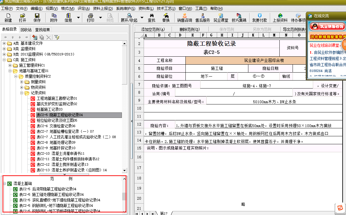 在軟件的左下方,隱蔽表格的范例有很多的,其中是有鋼筋隱蔽的范例的, 樓主可以看下。位置如圖