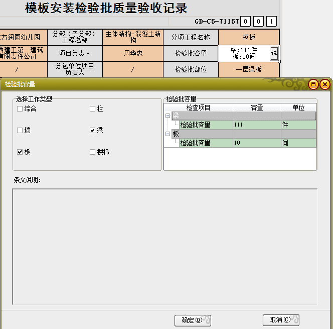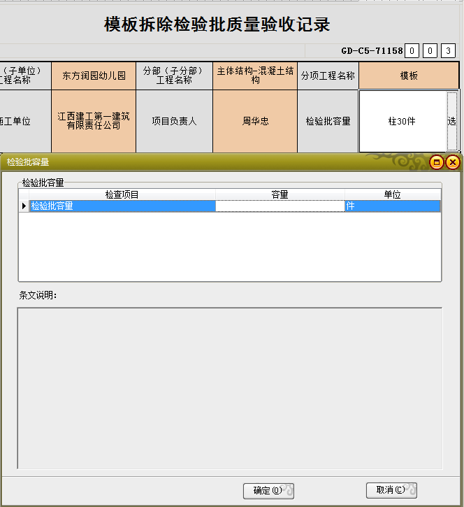 模板拆除的確不用做,增加了混凝土拌合物檢驗(yàn)批,但是如果實(shí)在要做,你不一定非要在那里面改,你可以直接在檢驗(yàn)批容量里輸入:墻:5件;柱:10件。。。。。。。是可以直接輸入的,干嘛一定非要到那里面去輸入呢
