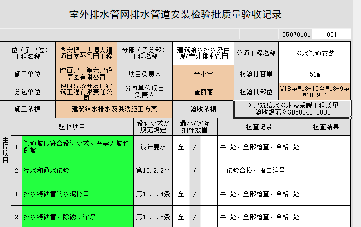 您好,GB50242-2002未給出最小抽樣數量。默認為全數檢查
