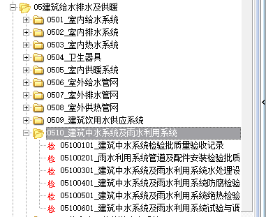 北京資料中的給排水分部中, 0510建筑中水系統(tǒng)及雨水利用系統(tǒng)里面有相應的檢驗批表格