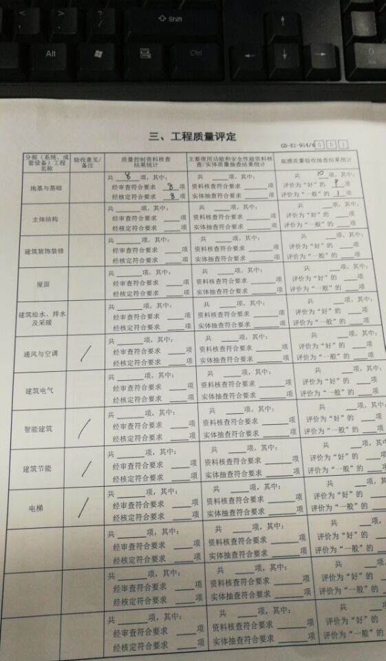 這個簡單,建筑與結(jié)構(gòu)本來就包含那幾個分部工程,既然把它們分別列出來了,那就對應(yīng)相應(yīng)的表格,是多少項就是多少項