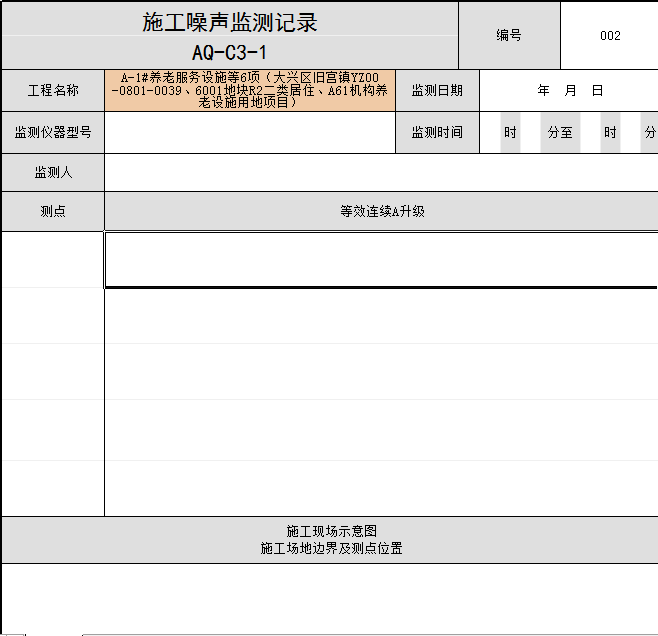施工期間,測量連續(xù) 20 min 的等效聲級,夜間同時測量最大聲級。