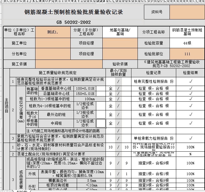 您好,用鋼筋混凝土預(yù)制樁檢驗批質(zhì)量驗收記錄就可以的。