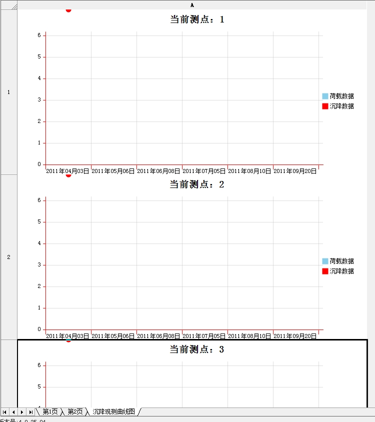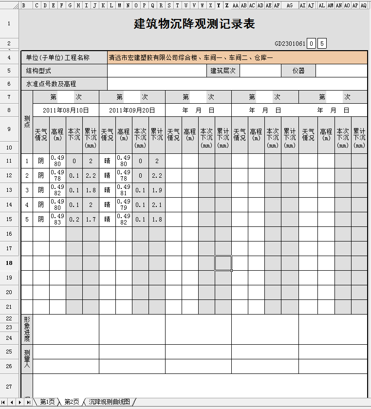 新建表格建筑物沉降觀測記錄時,需按要求填寫量測點數(shù)、量測次數(shù),然后開始記錄數(shù)值,這樣才能生成沉降觀測曲線圖