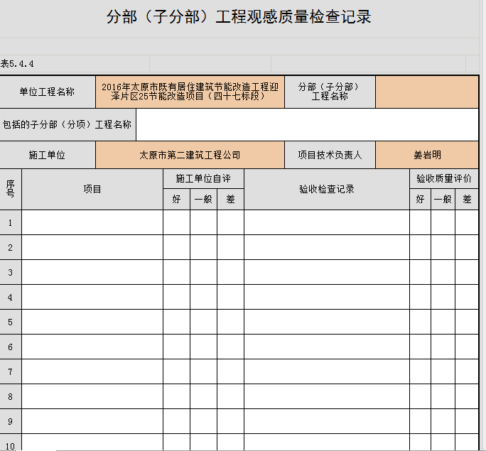 可參考單位(子單位)工程觀感質(zhì)量檢查記錄內(nèi)的檢查項目填寫