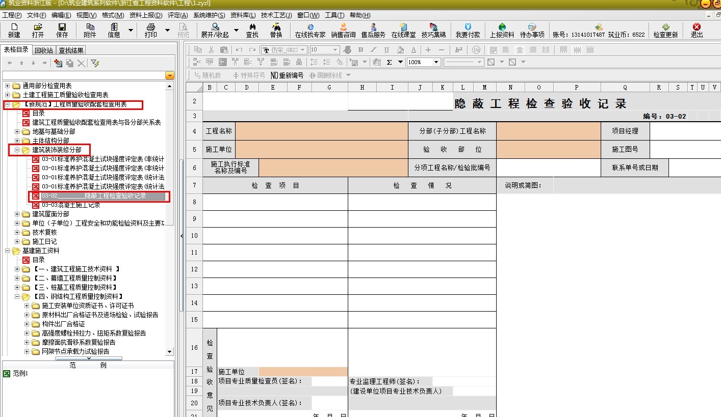 您看一下,這是浙江資料軟件的裝飾裝修分部的隱蔽表格。