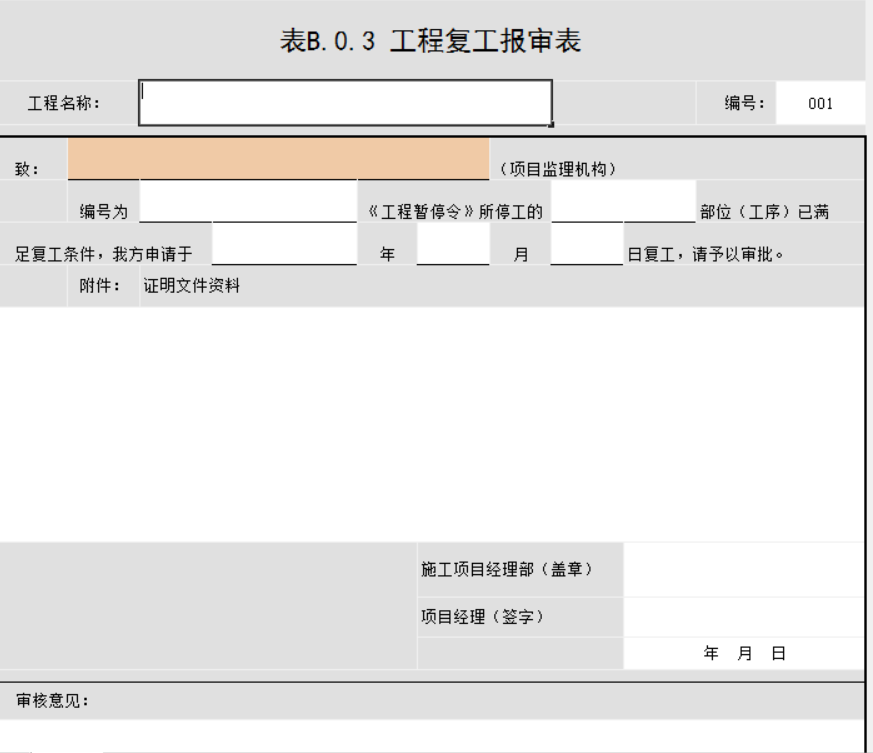 復工報審表,根據(jù)停工的位置進行整改,整改完成后拍照片,交給監(jiān)理審查,確定整改完成后才能復工。