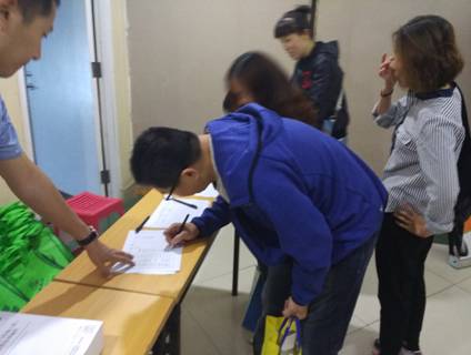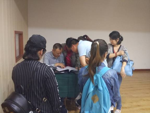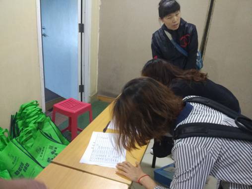 早到的學(xué)員們?cè)诤灥筋I(lǐng)取培訓(xùn)物品