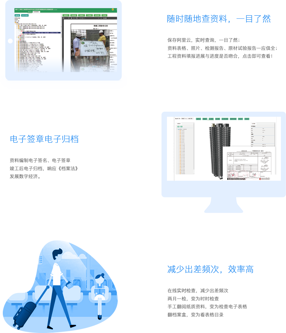幫助施工企業(yè)完善施工質(zhì)量的過程管理,實現(xiàn)資料可視化管理,完成電子版資料存檔。